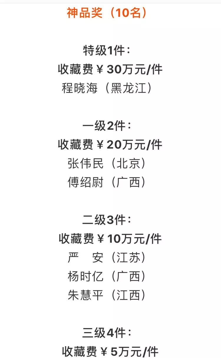 神品奖(10名)