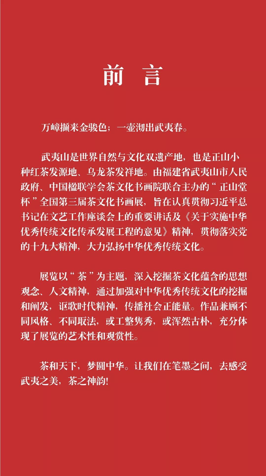 “万嶂撷来金骏色,一壶沏开武夷春”,悠悠的武夷山水孕育出茶文化的绵延不绝,“正山堂杯”全国第三届茶文化书画展·民进广州市委文艺基层委员会《武夷归来》书画展正是这种茶文化良好的表现形式。此次展览作为“正山堂杯”全国第三届茶文化书法巡回展第四站,是民进广州市委文艺总支的艺术家们继武夷归来后与正山堂和正山堂书画院再叙笔墨茶缘最好见证。