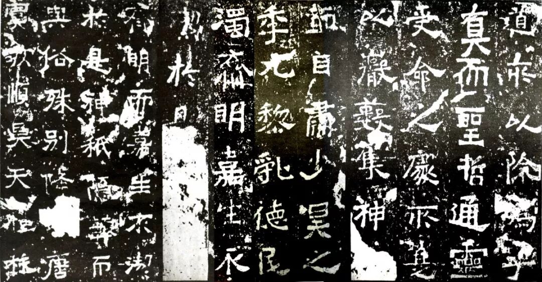 薛先生的观点,在魏碑体是否受到写经体的影响上,与丛先生的观点是一致的。但薛先生分析的更具体。比如说,薛先生不但从洛阳龙门石窟的制造者方面去寻找线索,而且注意到了北凉铭石书与写经书面貌非常一致的情况,薛先生举了如下例证:北凉《酒泉马德惠石塔刻经》(426年),《酒泉高善穆石塔刻经》(428年),《酒泉田弘石塔发愿文》(429年),《酒泉白双咀石塔发愿文》(434年),《酒泉程段儿石塔刻经》,以及《吐鲁番沮渠安周造佛寺功德碑》(445年)(图五)等,薛先生认为,北凉的“大量铭石书法中,这种写经书法的体式被完整地吸纳了。”
