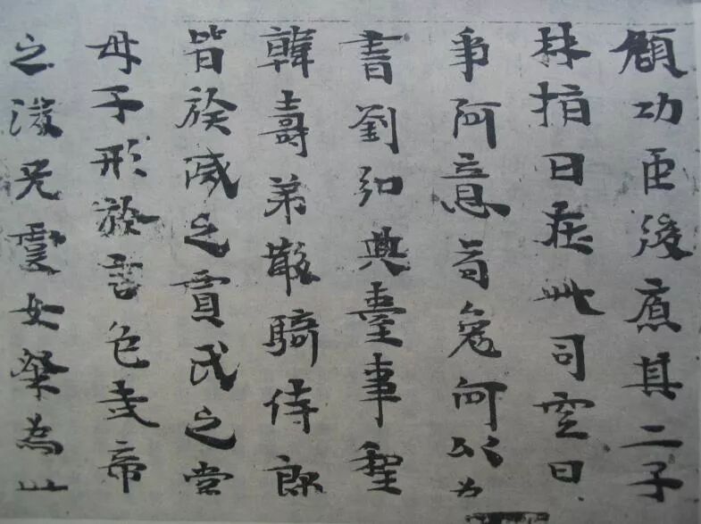 先于魏碑体出现百余年的王献之书法中,既然有与魏碑体特征相似者,先于魏碑体数年的王僧虔《太子舍人帖》(图十二)与魏碑体特征亦相类似,又有《司马金龙墓志》、《司马金龙墓漆画屏风题记》以及《始平公造像》、《司马元兴墓志》、《刁遵墓志》等为证,我以为,南朝书法是魏碑体的一个最主要的来源。