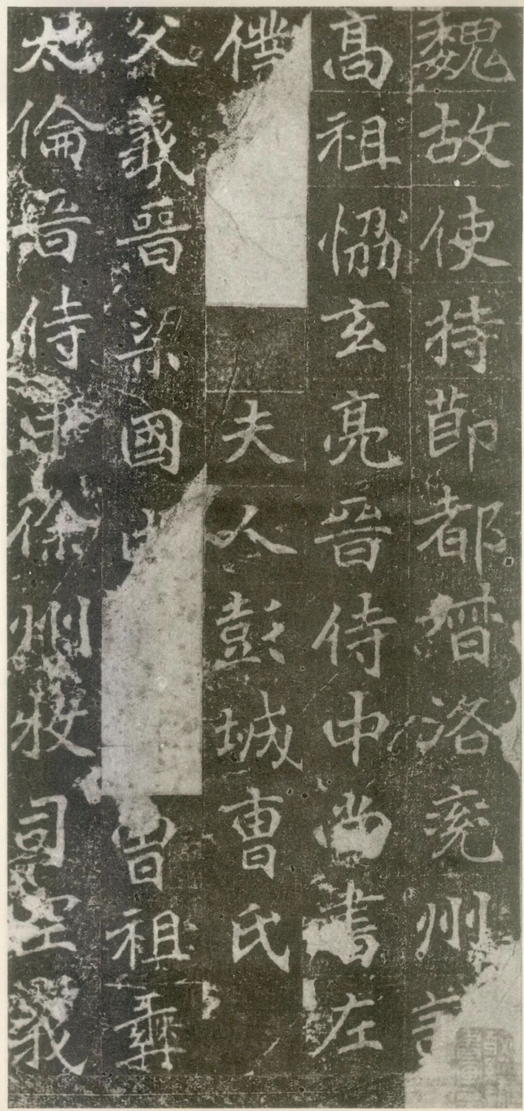 另一个有趣的现象是,司马金龙墓志书法与屏风题记书法,从字迹看当为同一人所写,但这种绝似玉版十三行的楷书经过一番凿刻后,却与典型的魏碑体书法很相似,《司马金龙墓志》(图九),应是目前所见的年代最早的魏碑体书法。