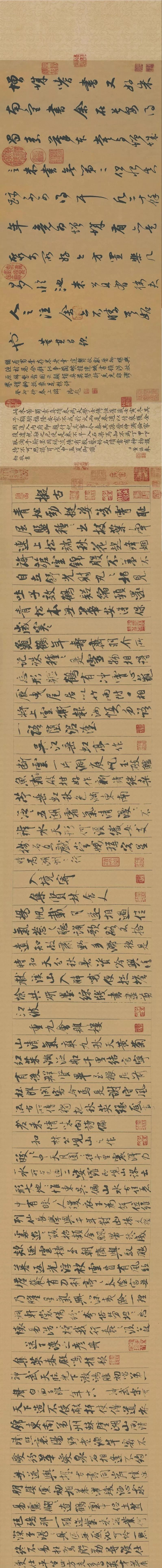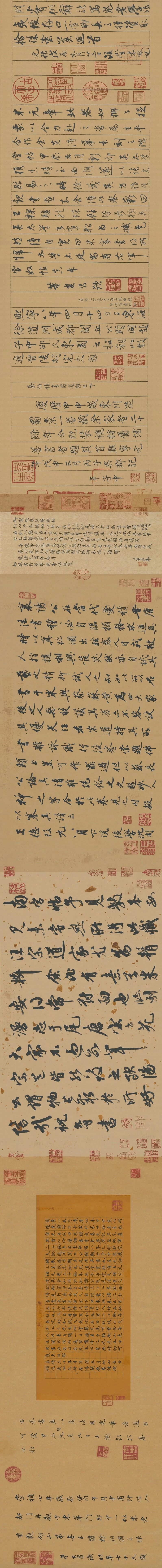 北宋米芾《蜀素帖》,亦称《拟古诗帖》,被后世誉为中华第一美帖,系中华十大传世名帖之一。墨迹绢本,行书,纵29.7厘米,横284.3厘米。书于宋哲宗元祐三年(1088),是米芾三十八岁时,在蜀素上所书的各体诗,计71行658字,署黻款。